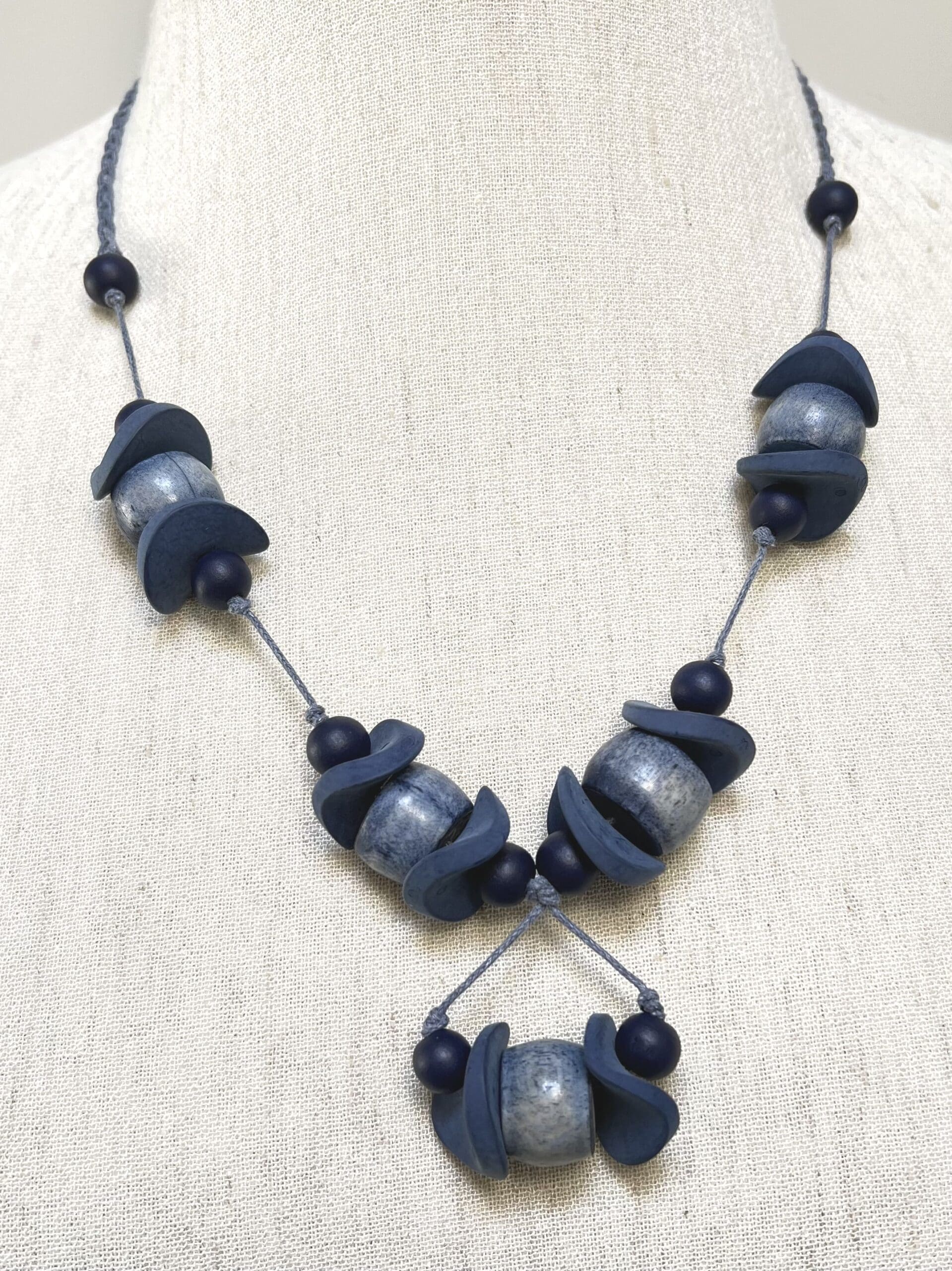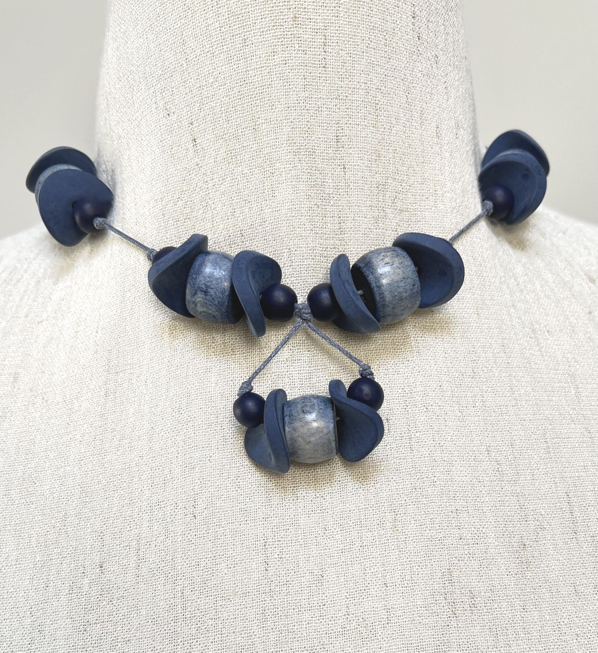 One-of-a-kind hand-knotted 1-strand drop necklace with navy bone and acrylic beads on navy string Adjustable easy tie closing, weighs 1.5 oz FREE SHIPPING