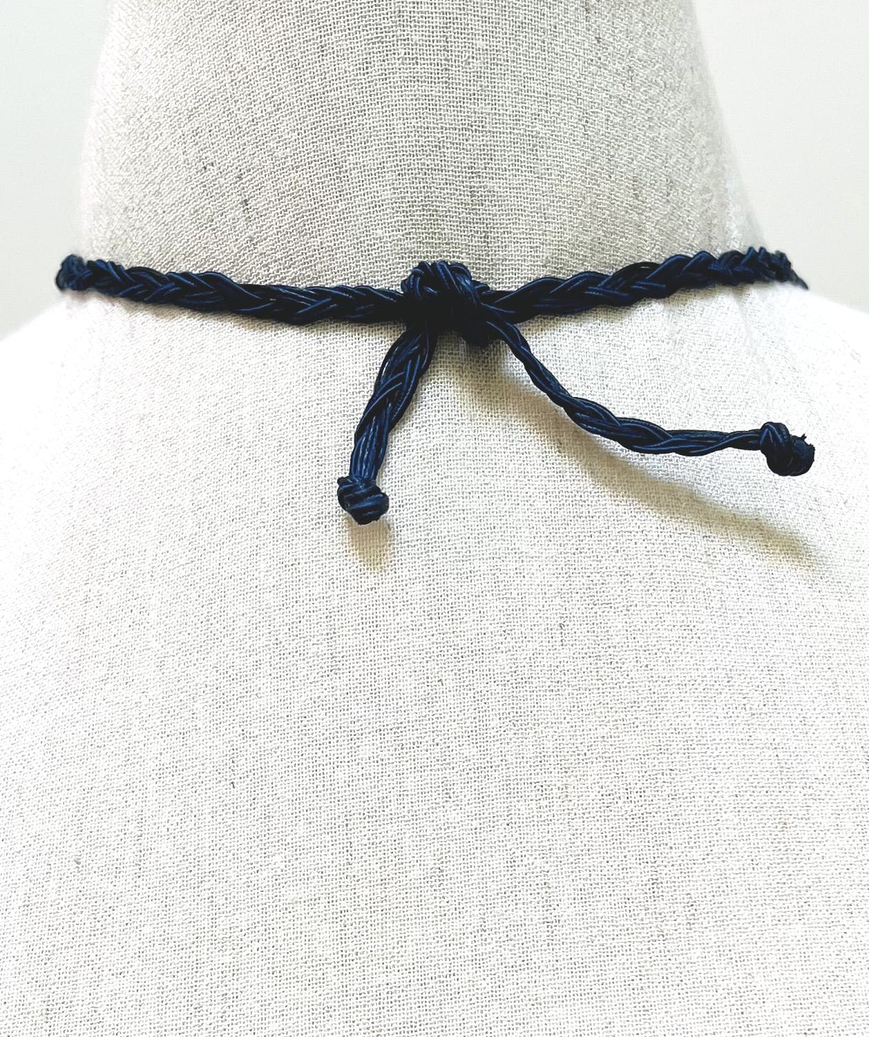 Variety of blue beads 5-strand statement necklace on navy string (N-452)
